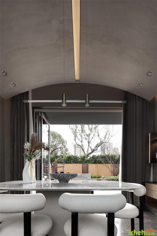 餐廳與前后庭院連成一體的“社交模式”,樣板間設(shè)計(jì)也可以成為各自獨(dú)立的“陪伴模式”。多變的空間展現(xiàn)了業(yè)主夫妻崇尚自由、鐘愛品質(zhì)生活的態(tài)度,讓人從多維的生活場(chǎng)景中感知自然氣息與藝術(shù)風(fēng)尚,伴隨著富有格調(diào)的三餐四季。