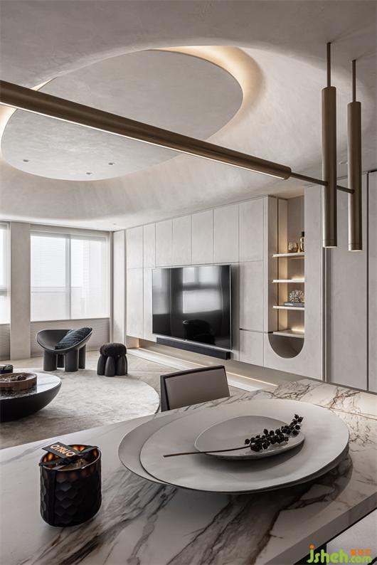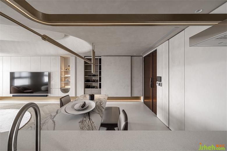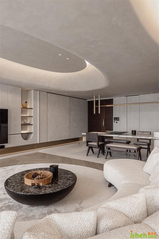 豪宅設(shè)計(jì)以特殊漆覆蓋天花及墻面結(jié)合木質(zhì)溫潤(rùn)的調(diào)性,保持真實(shí)溫暖的空間,將質(zhì)樸的寧靜與時(shí)間消逝的美留存于空間,刻劃時(shí)間流逝的蹤跡,純粹的空間本質(zhì),透過設(shè)計(jì)營(yíng)造舒適安心的氛圍