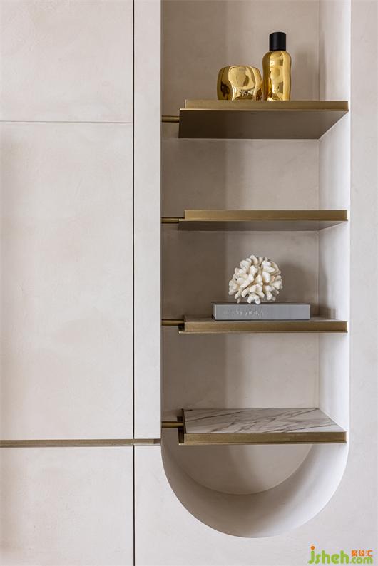 電視墻體崁入式的木制收納柜,具備機(jī)能且融入明亮的細(xì)節(jié),提供展示的需求,同時(shí)將收放張力,分隔的窗框?yàn)檎w產(chǎn)生區(qū)隔提供心理上的呼應(yīng),以木材平衡特殊漆的色調(diào),光線透過窗簾介質(zhì)進(jìn)入室內(nèi).