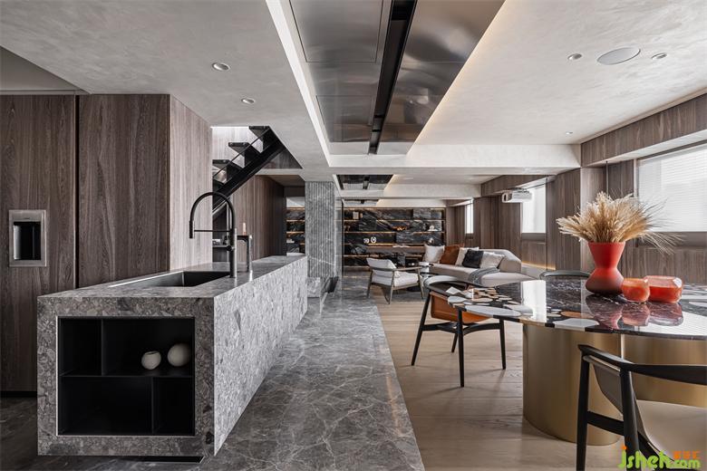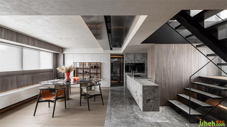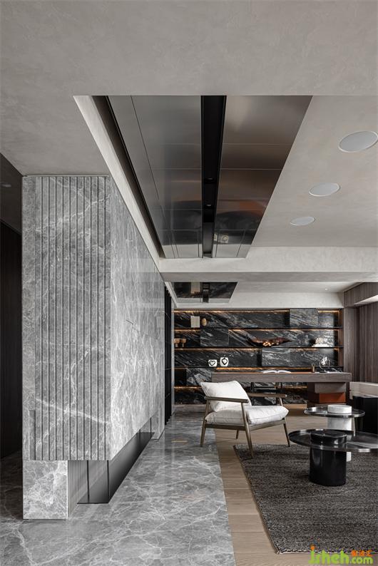 藉由天花與地坪之間建材上的界定,區(qū)畫出了不同的空間屬性,舍棄了過多的屏障與門扇。豪宅設(shè)計(jì)在行進(jìn)間保有隱私及提升動線流暢。地坪延伸到戶外,將能模糊室內(nèi)外的界定,引景入室外也拓展室內(nèi)開間尺度。