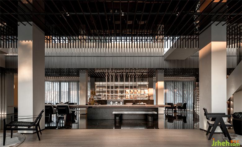 會所設(shè)計主色調(diào)以大地色系為主通過格柵的應(yīng)用 對進(jìn)入光纖重新切割 創(chuàng)造更豐富的體驗效果和視覺效果。斑駁光影不規(guī)則地穿透格柵,時間的韻律化爲(wèi)眼前的浮光掠影。