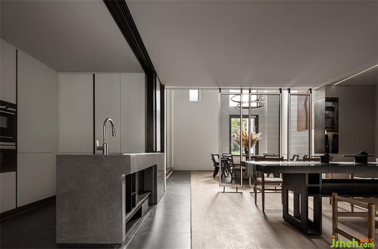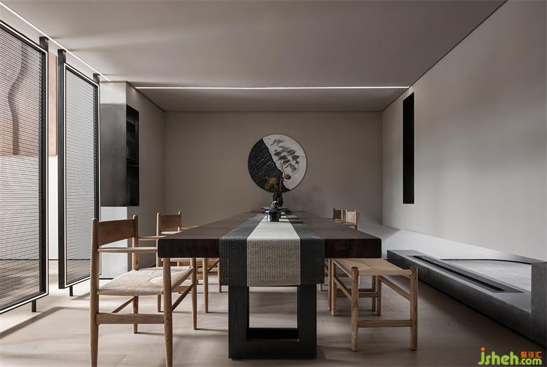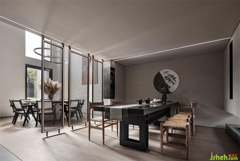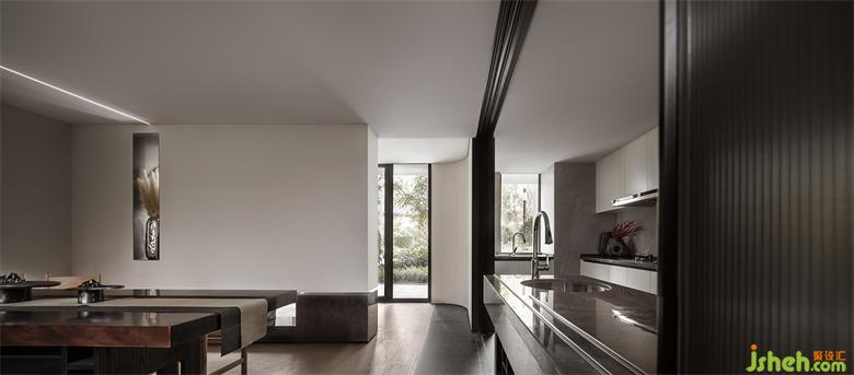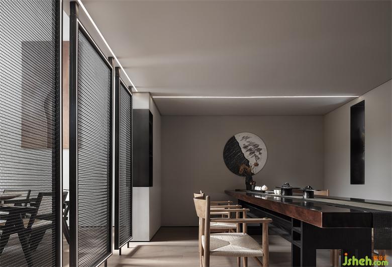 前廳的島臺與水吧臺透過墻體穿插連續(xù)在一起,“天際線”的光線延續(xù)了空間,將彼此牽引在一起。武漢會所設(shè)計平滑細(xì)膩黑鈦不銹鋼與富有肌理感的微水泥塑造沉靜感的異形空間,溫潤的木皮與冰冷的石材裝裱空間的張馳華麗。