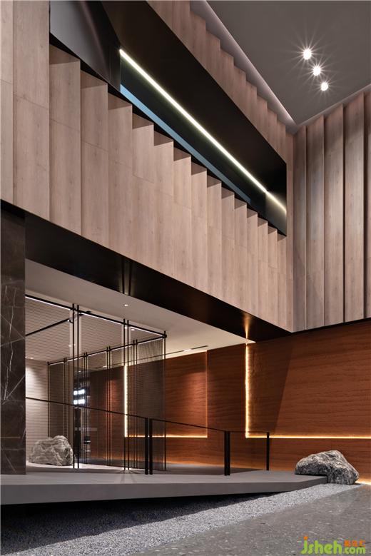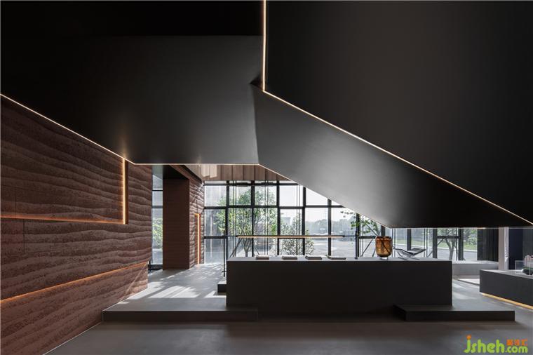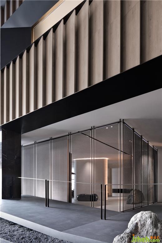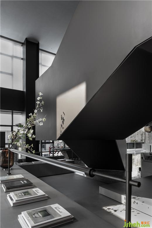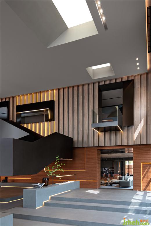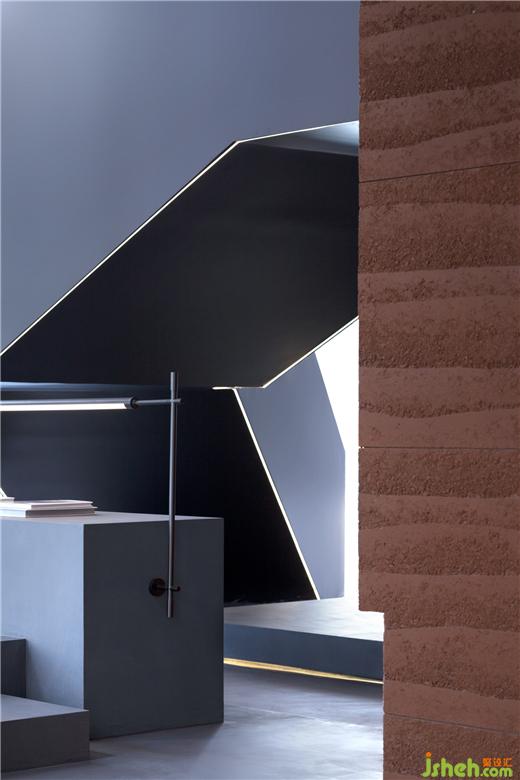 空間借由形體、線條、色彩的形式組合或結(jié)構(gòu)來表現(xiàn),添一分則累贅,少一分則寡淡,恰到好處地表現(xiàn)出空間的視覺張力。顧家展廳設(shè)計在整體的空間基調(diào)上,被光照折射的建筑塊體跟隨著光影的線條進行延展,同時營造出具有現(xiàn)代極簡和未來消隱的不同感受,極具“城市山谷“的氣場,幽靜深遠。
