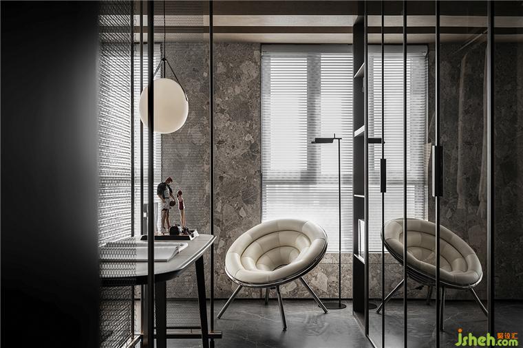 空間內(nèi)雅致的白和極簡的黑交織碰撞,利落干凈的空間帶來純粹而自由的力量,