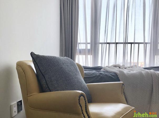 黃色的小沙發(fā)和金屬床架的結(jié)合剛剛好。深圳裝修公司#沙發(fā)