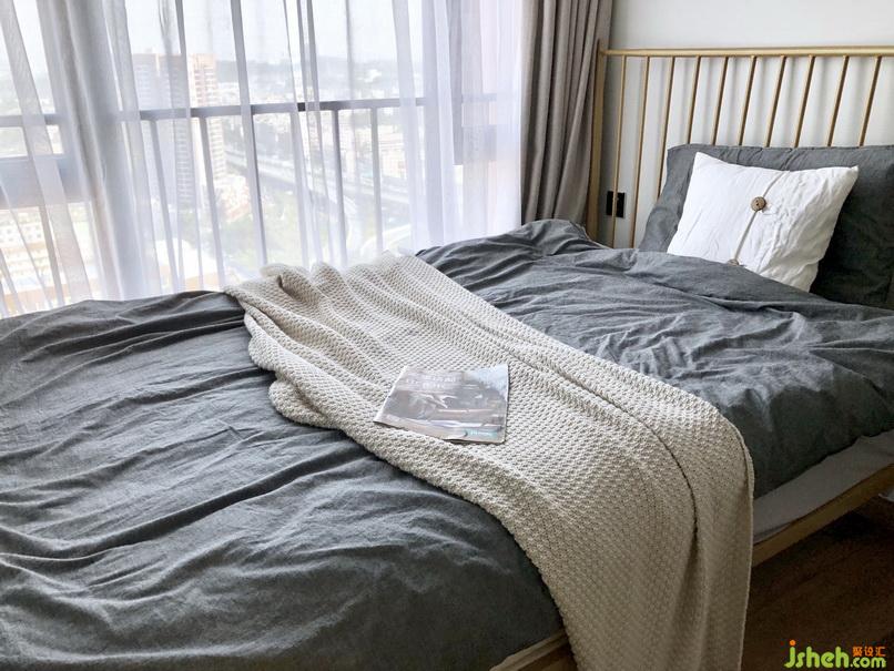 深灰色的床品搭配金屬鐵架床,都是現(xiàn)代簡(jiǎn)約比較好用的搭配。#深灰色