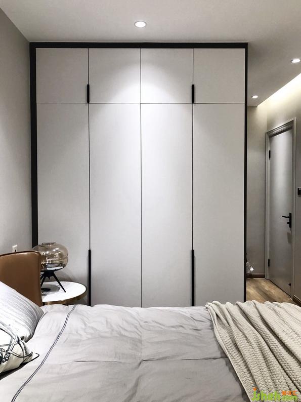雖然沒(méi)有衣帽間,但是大柜子還是需要的。白色的柜門(mén)搭配黑色門(mén)把,線條感強(qiáng)又簡(jiǎn)約,時(shí)尚時(shí)尚最時(shí)尚。#衣柜