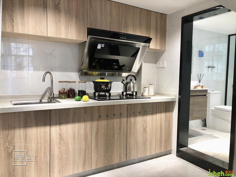 根據(jù)公寓的性質(zhì)以及面積的限制考慮,并沒有選擇做封閉式的廚房,而是設(shè)計了簡單直接的開放式廚房,更適合現(xiàn)代年輕人的生活習(xí)慣,讓空間顯得更加的開闊。
