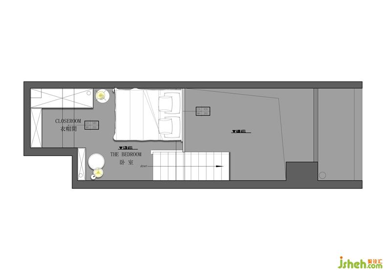 因?yàn)榭紤]是單身公寓的原因,二層空間設(shè)計(jì)為半開放形式,比起隔墻落地玻璃的的形式會大大增加空間的采光,配上輕柔的紗簾也保留了空間私密性。讓整體空間即明亮開闊又不失空間的功能性。深圳室內(nèi)設(shè)計(jì)師