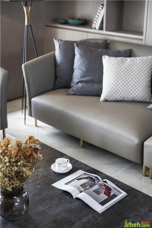 簡(jiǎn)質(zhì)空間,客廳大面積的大理石,與木飾面的碰撞,搭配冷色系沙發(fā),使整個(gè)空間成熟穩(wěn)重,又不失一些木質(zhì)帶來的輕與暖。