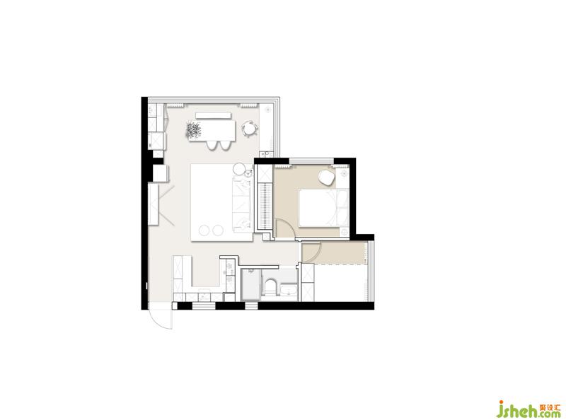 原始空間格局方正,但實際面積并不大,按原始格局的規(guī)劃,客餐廳特別擁擠,陽臺比例太大,和整體空間比例不協(xié)調(diào)。