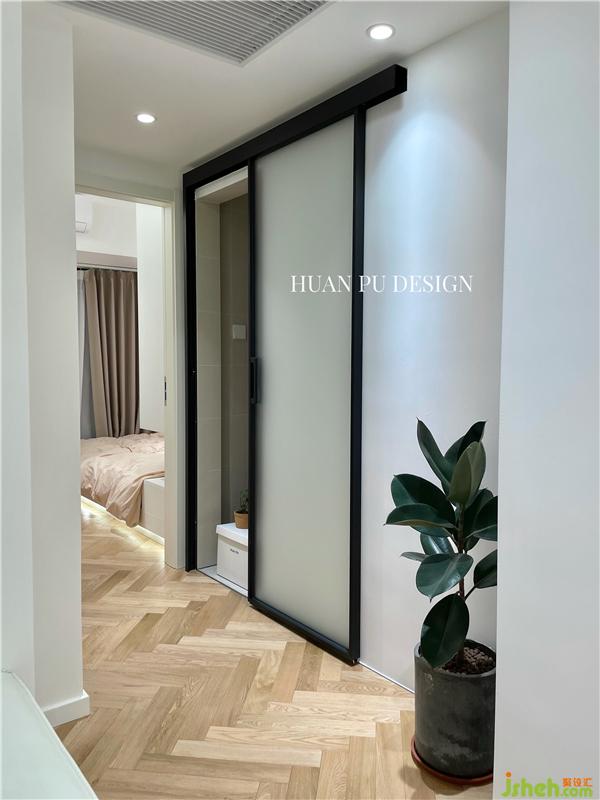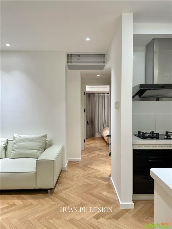 人字拼木地板全屋通鋪,不留有門檻或收邊條,視覺上更加的干凈美觀。沒有過多的造型材質(zhì)修飾,軟裝和綠植的搭配就顯得尤為重要,轉(zhuǎn)角處一棵橡皮樹的擺放,起到了很好的點(diǎn)綴作用,讓空間更有生氣。