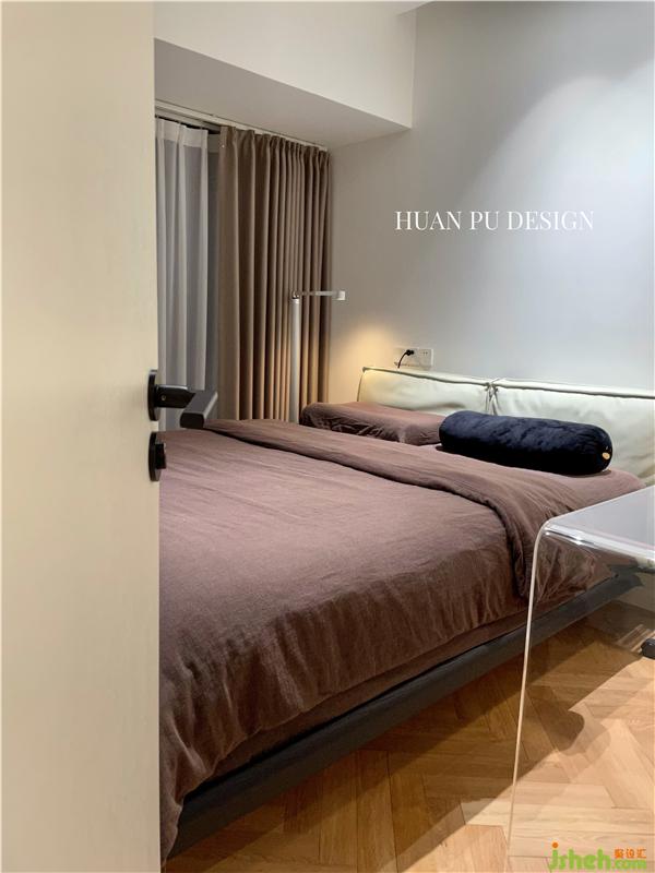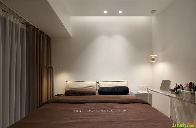 臥室原格局往客廳區(qū)域外推60公分,留有內(nèi)嵌衣柜的位置,設(shè)置整面衣柜及開放格。床頭吊燈給整個(gè)臥室起了很好的氛圍點(diǎn)綴。業(yè)主自購的亞克力梳妝臺(tái),擺脫了傳統(tǒng)梳妝臺(tái)的形式,通透的桌體不會(huì)讓空間顯得壓抑和擁擠。