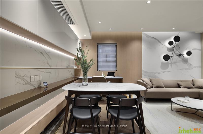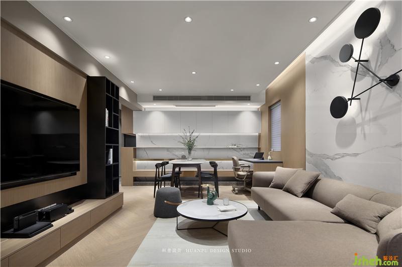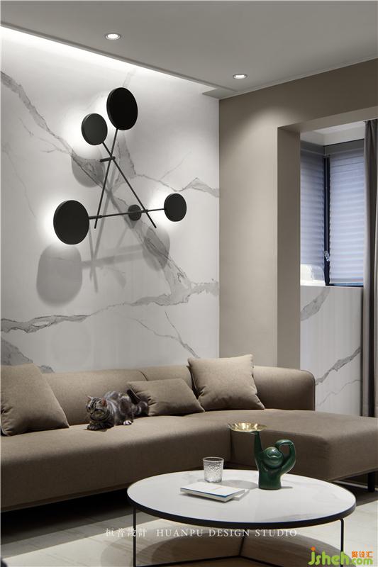 大理石墻上的簡(jiǎn)約壁飾,點(diǎn)綴著這片月光,讓客廳在整體簡(jiǎn)約的同時(shí)有著更加豐富的層次。
