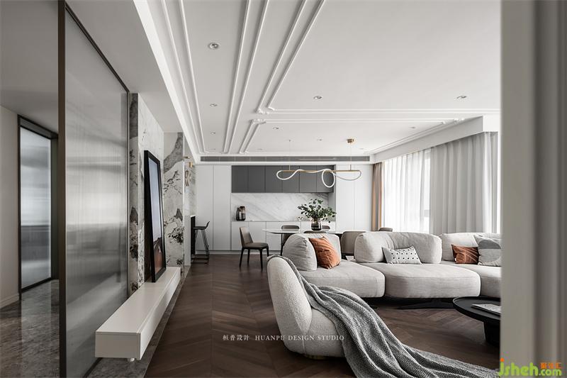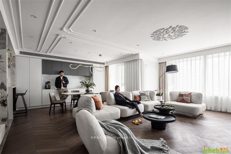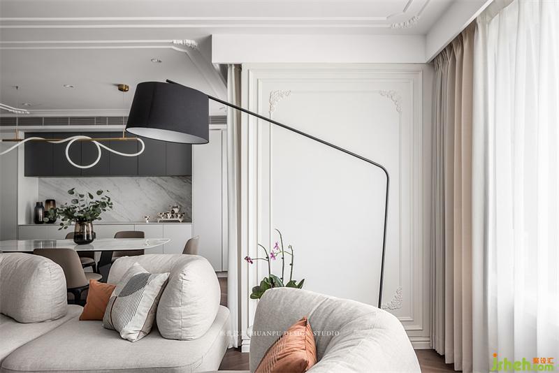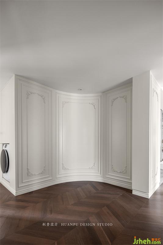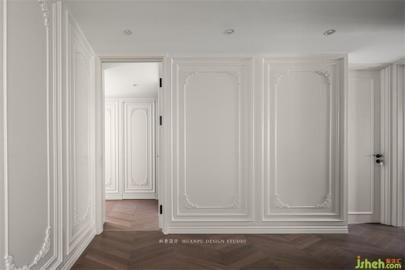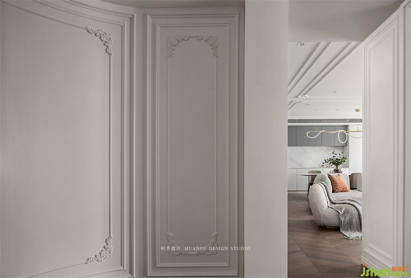 根據(jù)業(yè)主的喜好,我們?cè)陂T上特別定制了與墻體線條相同的石膏線條,使得整體更加一致。過廳的簡(jiǎn)潔法式白墻設(shè)計(jì),是全屋的一大亮點(diǎn)。作為連接客餐廳和三個(gè)臥室的紐帶,更好的釋放了空間,是不可缺少的一個(gè)角落。