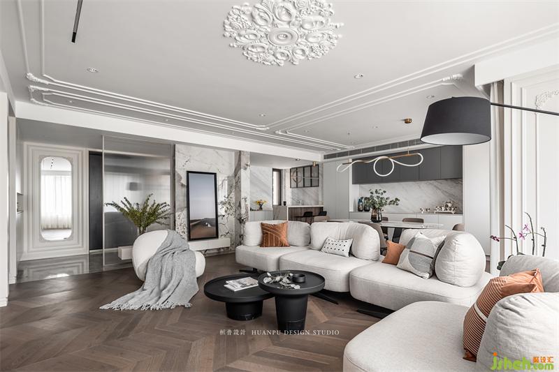 公衛(wèi)也運用了撞色元素,嵌入式龍頭,更簡約干凈。墻面增設(shè)長條壁龕,使用魚肚白亮面材質(zhì),作為點綴,提亮了整塊背景。既增設(shè)置物空間,也不失美觀度。分體盆設(shè)計方便業(yè)主放置收納洗浴用品,懸空馬桶更便于清洗,整體黑白灰質(zhì)感,看起來高級精致。