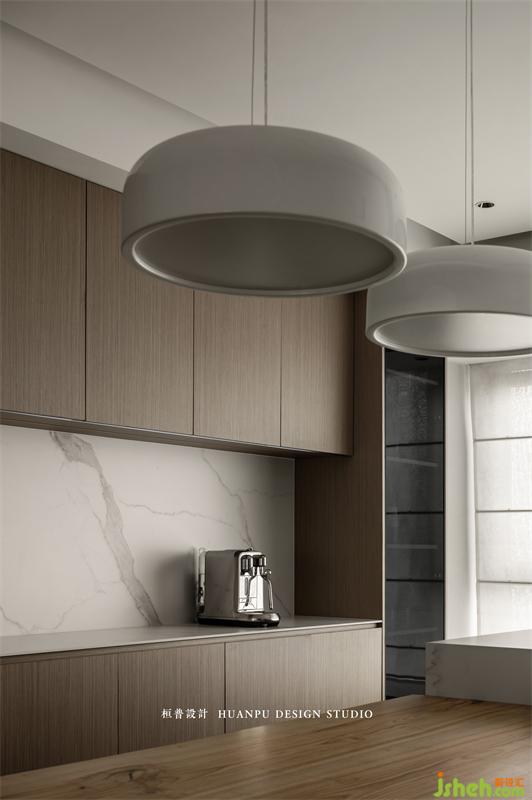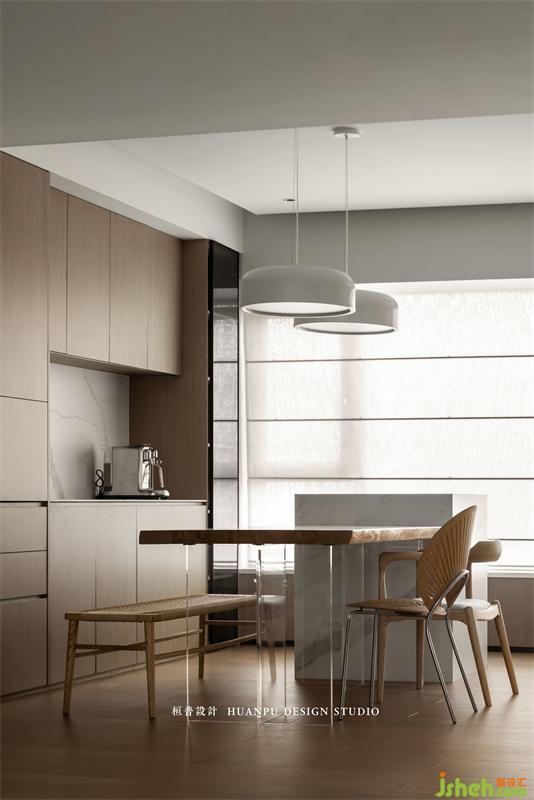 餐廳區(qū)域設(shè)置西廚功能,正面高柜提高收納空間的同時(shí),備餐更便利。