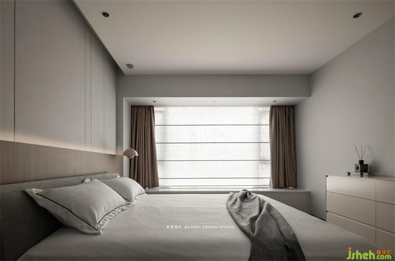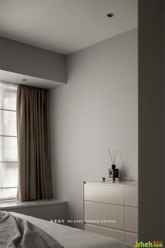 空間沒有過(guò)多的裝飾,床尾的半高斗柜除了增加空間收納功能,擺放香薰及臺(tái)燈軟飾,點(diǎn)綴且提升空間質(zhì)感。