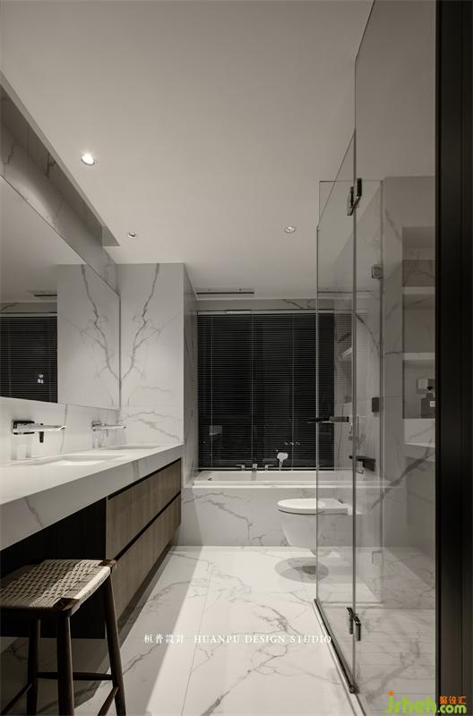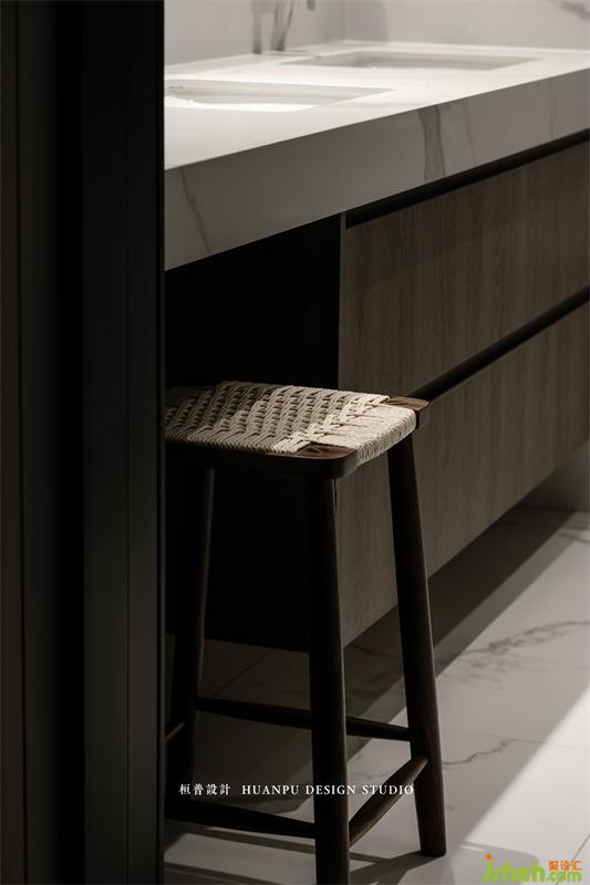 主衛(wèi)預(yù)留雙臺(tái)盆的同時(shí),留有化妝臺(tái)的位置,洗漱護(hù)膚一步到位,使用感更加流暢。