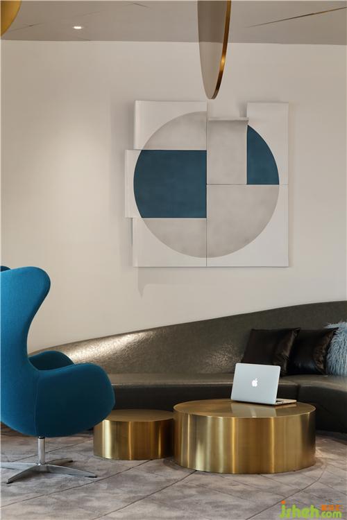 金屬質(zhì)感的圓形茶幾,抽象切割的藝術(shù)畫(huà)作,扎哈知名的月亮沙發(fā)成為流動(dòng)的紐帶,將室內(nèi)與建筑的界限模糊開(kāi)來(lái),建構(gòu)出實(shí)用體驗(yàn)與美學(xué)意象共存的復(fù)合功能空間。白金色調(diào)串聯(lián)起“圓”的概念,用通透而柔和的方式營(yíng)造出舒適的場(chǎng)景體驗(yàn),一抹靜謐的藍(lán)成為跳脫呼吸節(jié)拍的存在。
