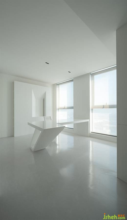定制的異型辦公桌,內嵌式的墻體置景,延展出特立獨行的個性,辦公室設計每一個元素都只為這一個空間而存在,相互呼應,相互配合,凝聚成為空間的核心。
