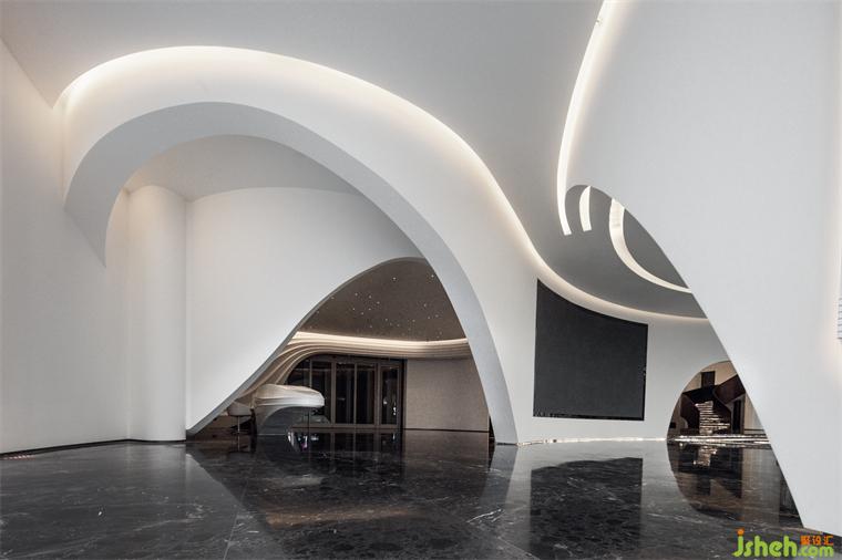 從宇宙創(chuàng)世與生命起源中汲取能量,以東方曲線介入,使空間如同一塊被溫柔翻向室內(nèi)的自然,曲線構(gòu)成了其內(nèi)部的整個(gè)宇宙。