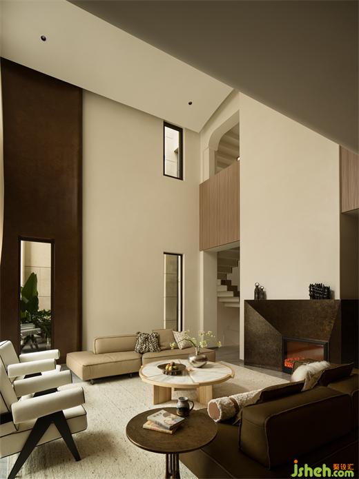 重慶別墅裝飾重新構(gòu)思起居廳布局,讓人坐在觀景自然里。會(huì)客廳、 餐廳、 廚房、 收藏陳列,一層空間 “公共”又“集體”,大家一起進(jìn)行公共活動(dòng),可以選擇在餐桌上與家人舉杯換盞時(shí)交換意見,可以在沙發(fā)與同伴竊竊私語。