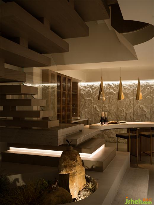 負(fù)樓層空間成為宴請(qǐng)朋友的偏娛樂和放松的開放式空間。