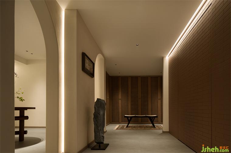 寬敞、開放的公共空間與緊湊、安靜的私密空間之間,既有路徑和墻面的物理區(qū)隔,又有不同的門洞溝通產(chǎn)生的場(chǎng)所濃淡關(guān)系。這種大與小、疏與密、放與收的對(duì)比,形成了獨(dú)特的空間節(jié)奏。