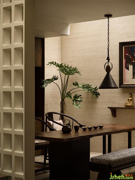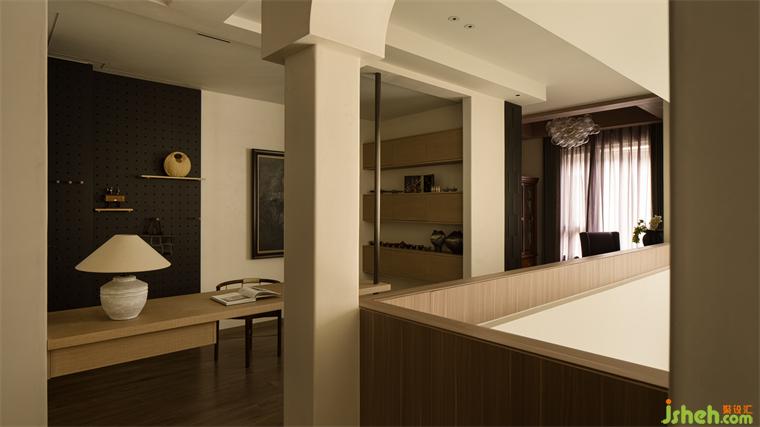二層成為夫婦兩人的個(gè)人愛好表達(dá)專屬區(qū)域,安靜的佛堂與茶室共立,借道而來的天光增加肅穆禪意,手工制作區(qū)與把玩展示開放之間 書香琴聲相伴。