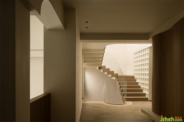 將至頂層傾瀉而下的光線灑入移步而來的樓梯間、行走里的從底層到頂層光線視野內(nèi)外腳步聲變化,構(gòu)成行走的風(fēng)景。