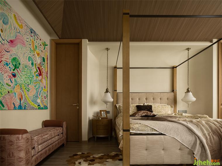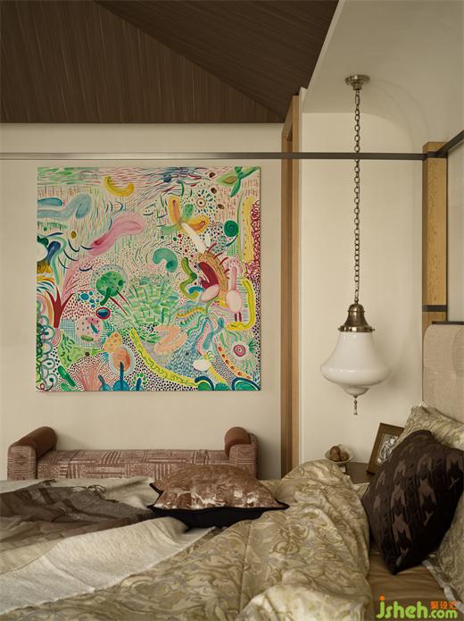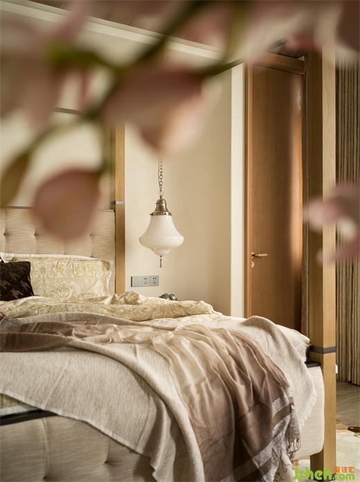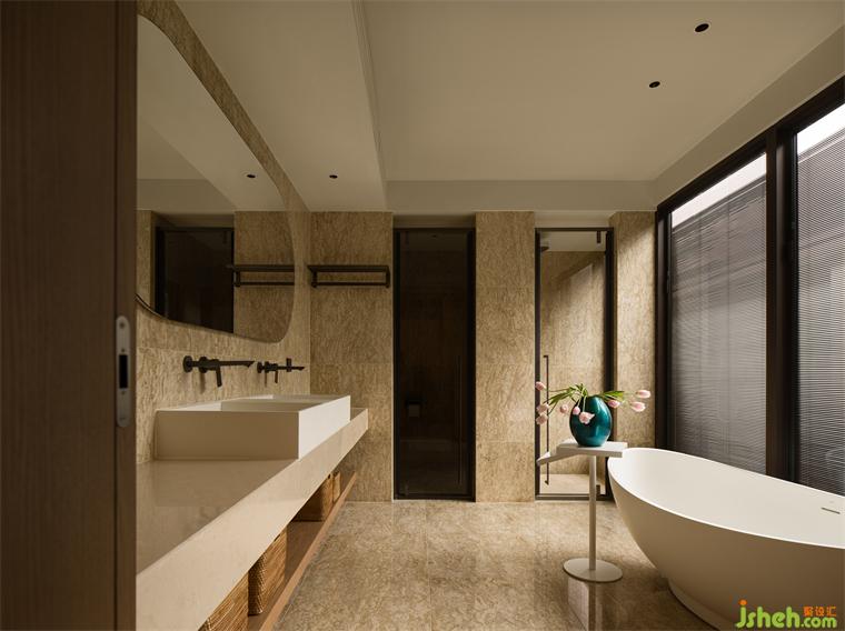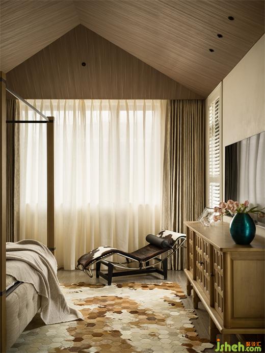 清風(fēng)拂起紗簾,主臥無(wú)界自然的闊景尺度,與克制有界的幾何藝術(shù)構(gòu)成了微妙的對(duì)比,平衡出空間向內(nèi)生長(zhǎng)的敦厚氣度、向外延伸的審美張力。