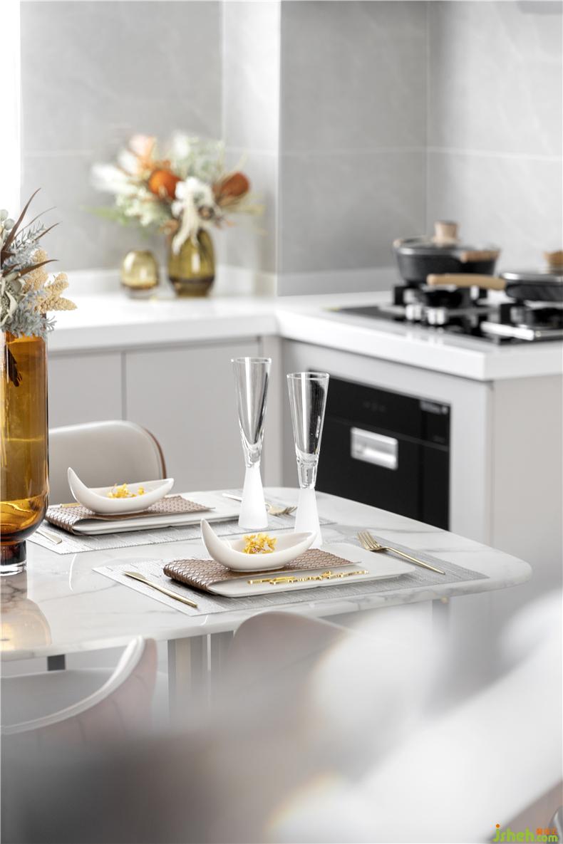 餐廳、廚房的開(kāi)敞互聯(lián),不僅是空間尺度的擴(kuò)容,更是現(xiàn)代都市格調(diào)生活方式與情感的融匯與詮釋。