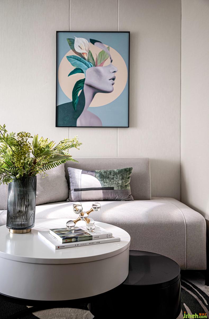 空間與人相輔相成,設(shè)計(jì)、藝術(shù)之于人,其最終目的是提煉生活,樣板房設(shè)計(jì)與之形成共鳴。藝術(shù)品透過錯(cuò)位創(chuàng)造趣味雅致的視覺效果,金屬質(zhì)感顯現(xiàn)出輕奢格調(diào)