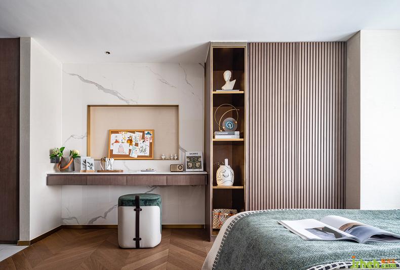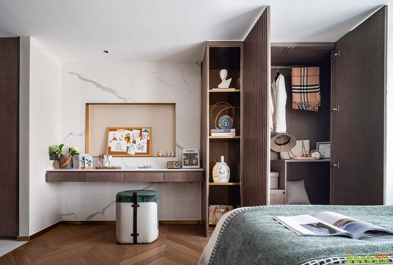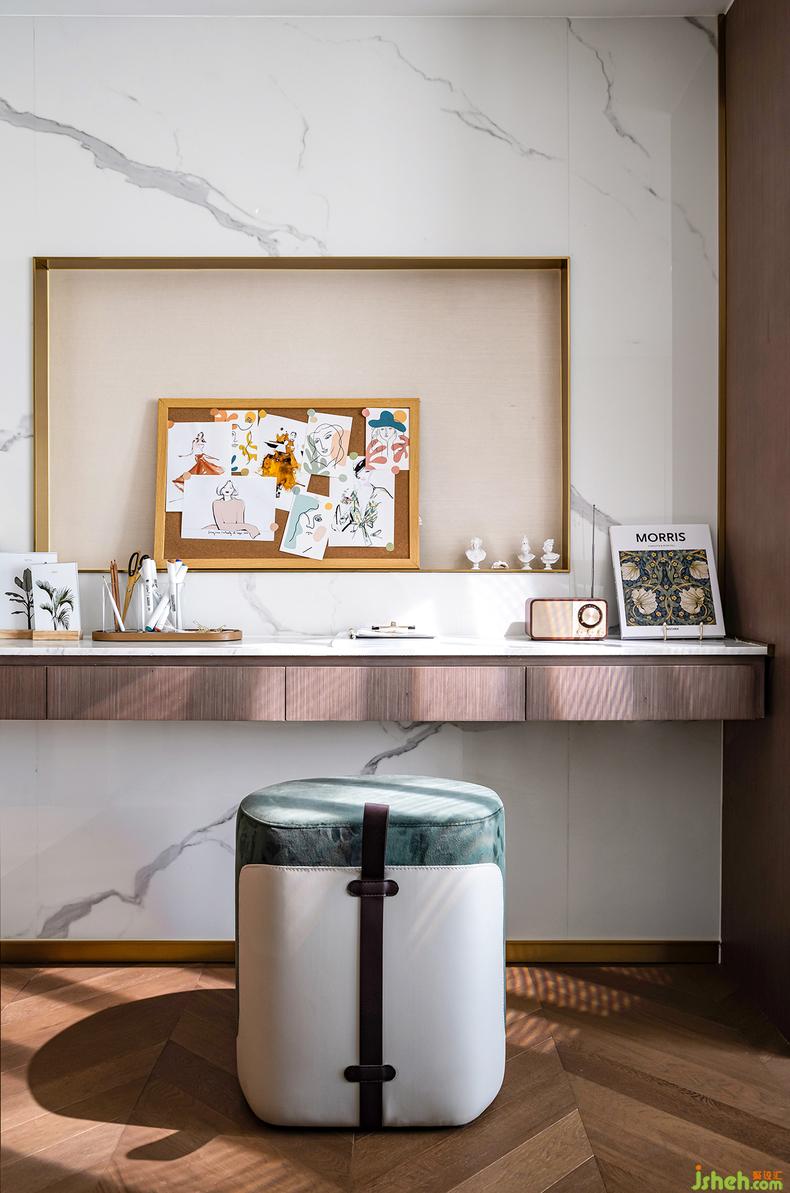 在現(xiàn)代女性的居所中,化妝間與工作臺(tái)缺一不可。因空間的局限性,我們將其合二為一,真實(shí)而自然的生活氣息不經(jīng)意間流露樣板房設(shè)計(jì)