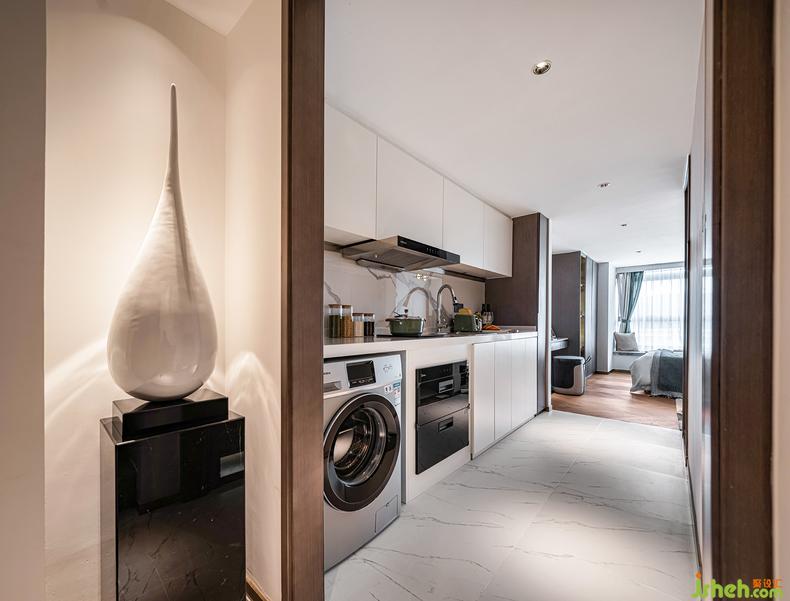 該項(xiàng)目定位為年輕女性的住宅,整體風(fēng)格呈現(xiàn)清新感,在空間設(shè)計(jì)與色彩挑選上符合現(xiàn)代都市女性對(duì)生活質(zhì)感的追求
