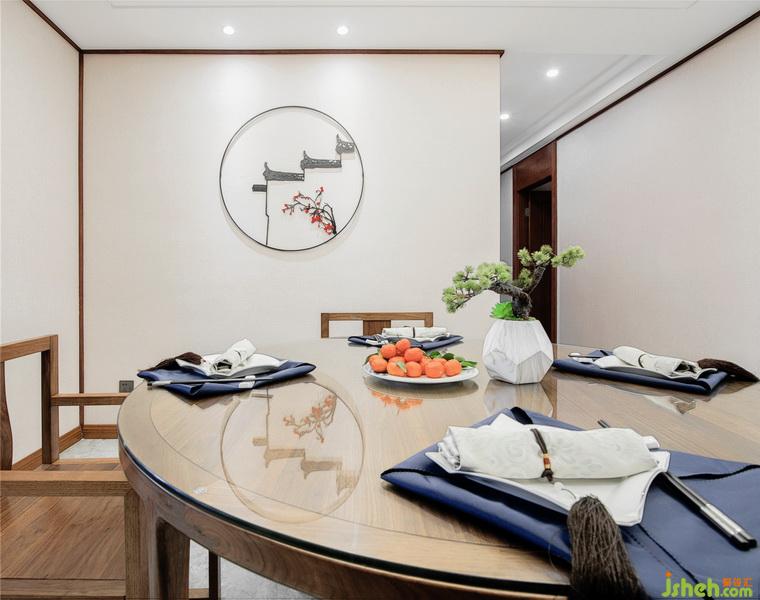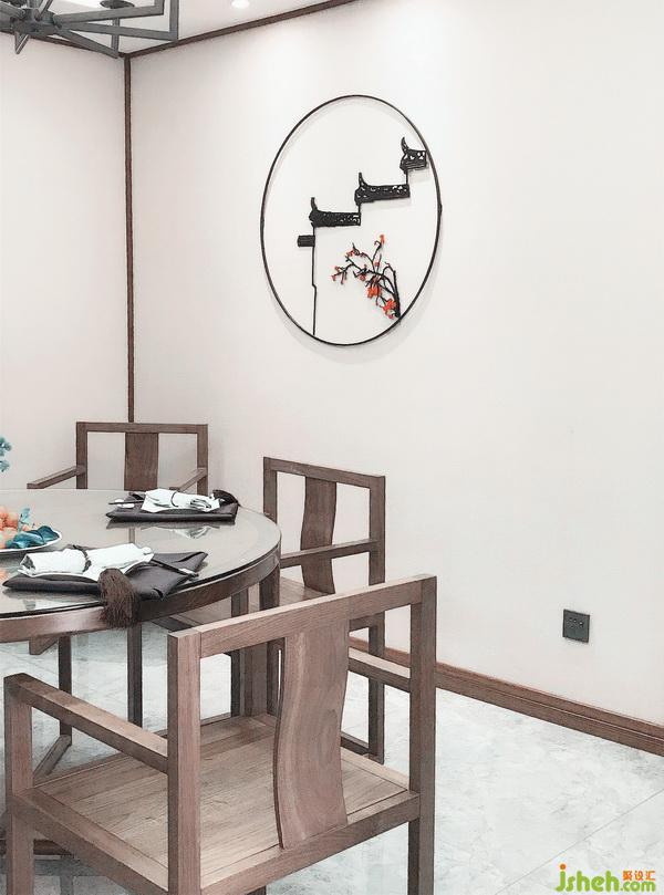 “黑瓦白墻,飛檐翹角 高低錯落,層疊有致”,在燈光的映襯下,墻上的掛飾顯得如此俏皮。懶洋洋的燈光打在餐桌上,餐桌有著家人所喜愛的可口飯菜,在家人臉上的笑容中,訴說的是一段段其樂融融的用餐時光。