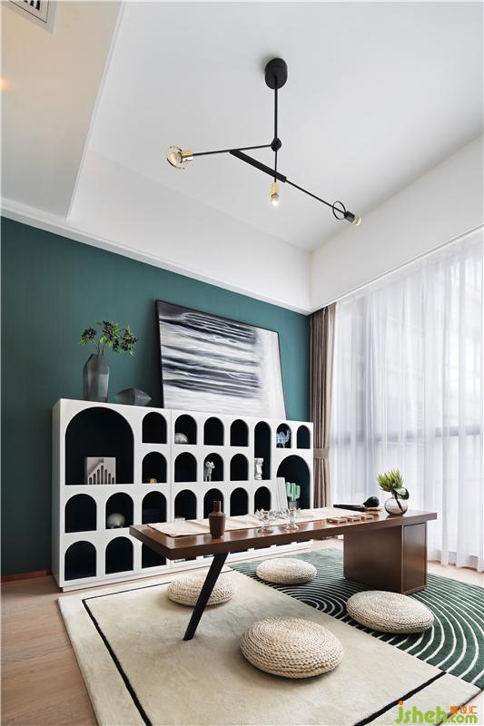 安靜中帶著禪意,是爸爸最愛呆的地方,每天都會(huì)花上幾個(gè)小時(shí)在這里,寫字閱讀思考,斗柜里都是父母外出旅游帶回來(lái)的紀(jì)念品,柜子上的靠畫也是父親的攝影作品,雖然空間里有不同的符號(hào),但并不影響它的協(xié)調(diào)和平靜。