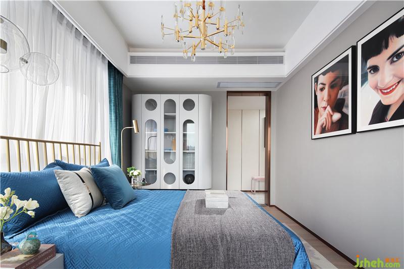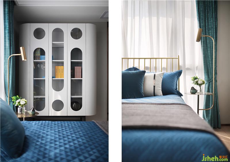 兩面落地窗,柔和的光暈透過紗簾,自然垂落,安靜、舒適中帶著和諧,精致吊燈的線條結(jié)合衣柜的符號(hào)打破了整個(gè)空間的寂靜,富有親和力的掛畫給整個(gè)空間帶來著溫馨的笑容,精心準(zhǔn)備的小小花藝,一看就是好客的主,可以給客人一個(gè)好的休息空間。