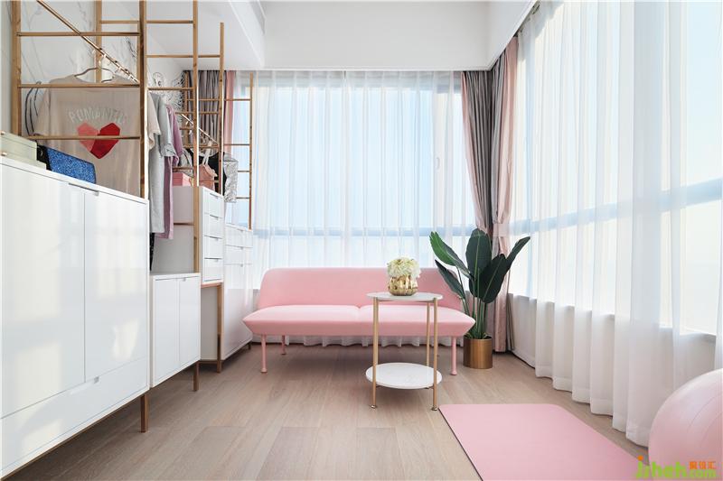 延續(xù)前面的粉色衣帽間, 錯(cuò)落有致,不是傳統(tǒng)封閉式衣柜,高低錯(cuò)落很有節(jié)奏感,把空間的每個(gè)角落都收拾的整齊寬敞,復(fù)古的休閑沙發(fā)讓整個(gè)空間更為休閑;來一首音樂,做一個(gè)瑜伽,體現(xiàn)著生活的情趣。裝修公司