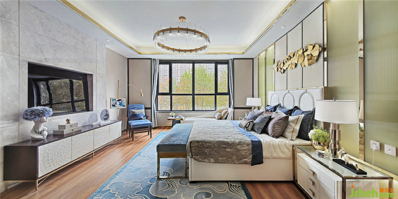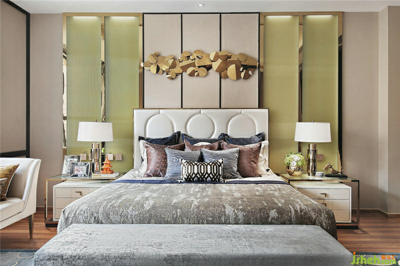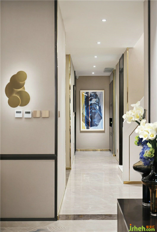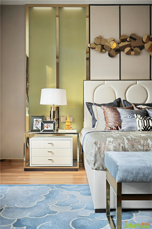 色彩鮮明的壁畫(huà)組合為奢華的空間之中增添了更多的藝術(shù)氣息,柔和的質(zhì)感中和了金屬、瓷磚的冷硬,帶來(lái)更舒適的審美享受。樣板房設(shè)計(jì)