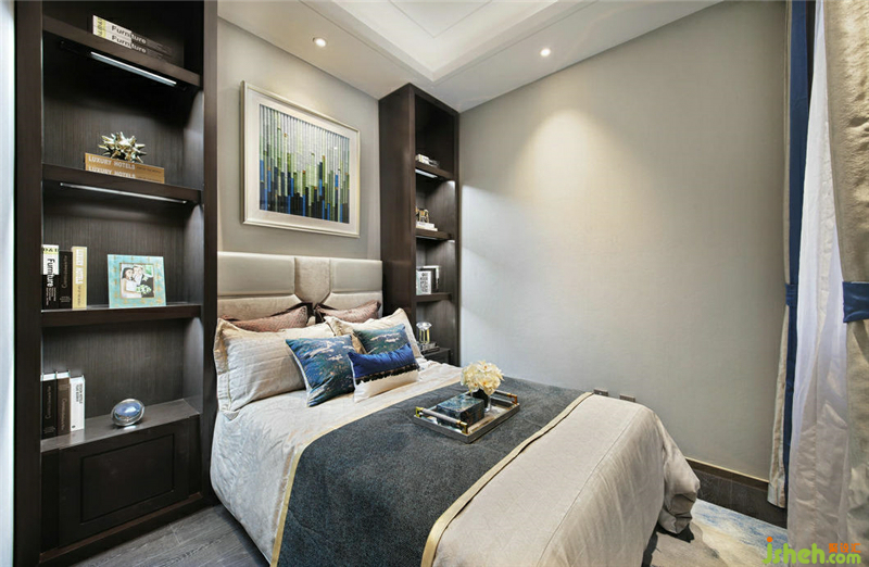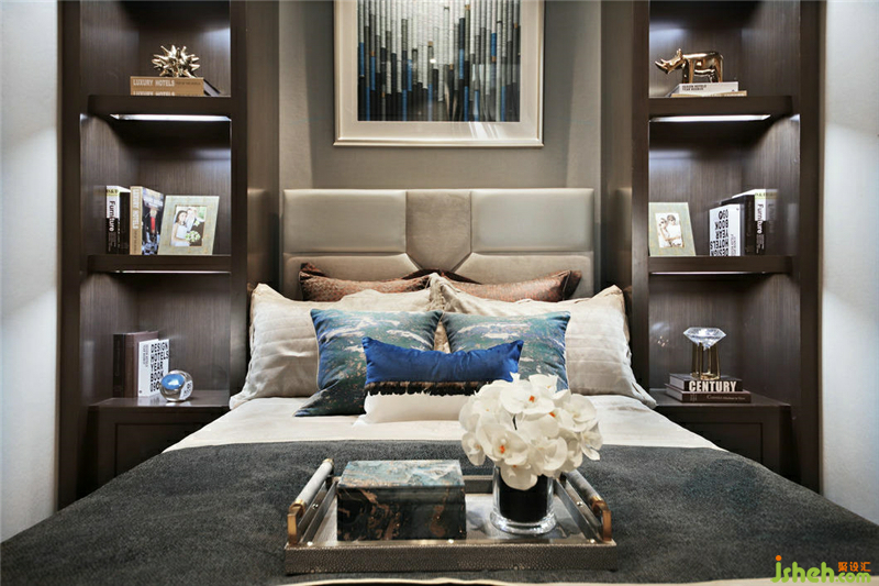 屋內(nèi)的各種擺飾讓臥室氛圍生動活潑不少,床頭的金屬材質(zhì)飾品更是帶來了靈動的氣息。樣板房設(shè)計