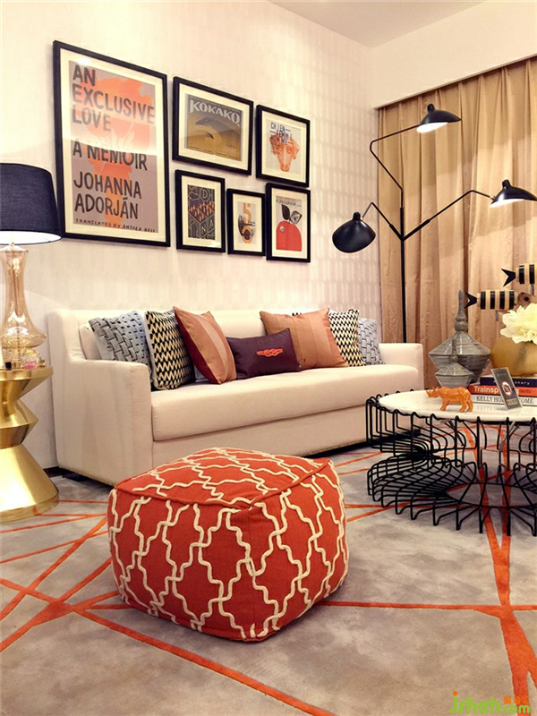 女主人單身女性,為高品質(zhì)生活追求者,希望以桔橙色和暖米色為主色彩,加以黑灰,亮金色配色來裝飾整個空間。