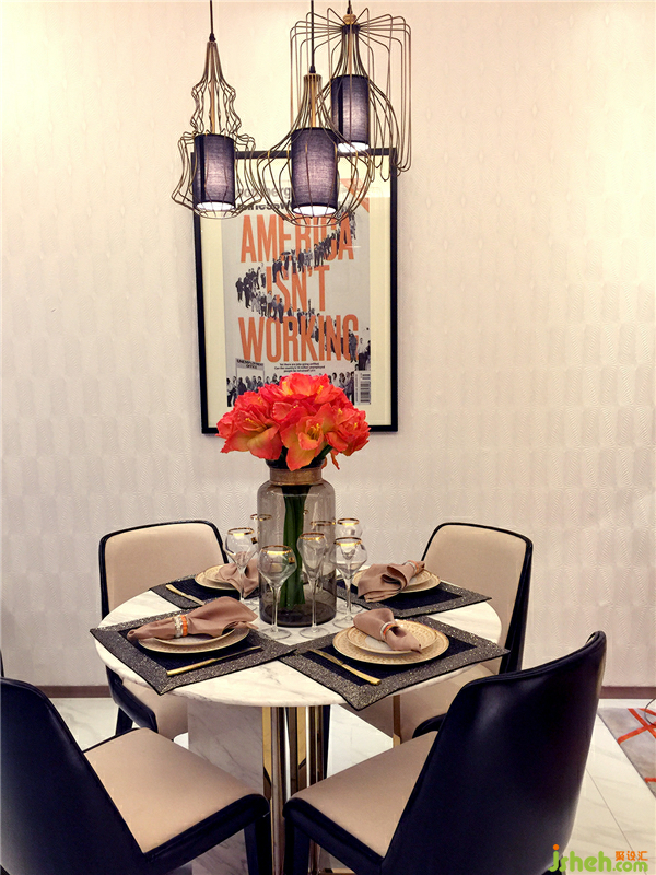 獨特品味的掛畫、流行服飾,各就其位,從中體現(xiàn)出主人公職業(yè)的特性。凝聚金屬光澤的現(xiàn)代裝飾和時尚前衛(wèi)的家俱,裝飾元素的不斷呼應和延續(xù)令整個空間在變化中擁有統(tǒng)一的特質(zhì),時尚的氣息無處不在。