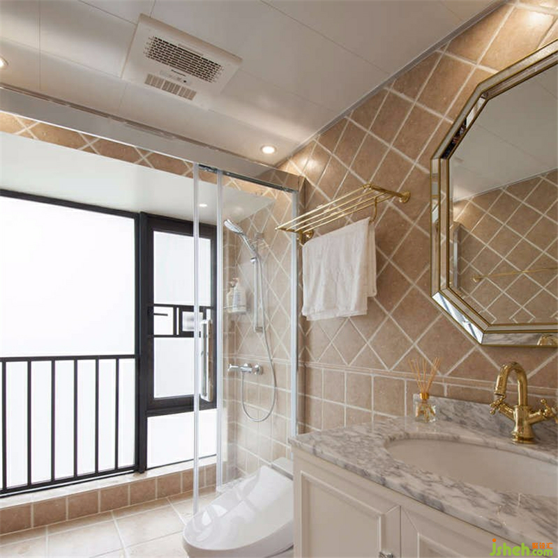 仿復(fù)古石材的拼貼,加金色古銅色水龍頭點(diǎn)綴,打造美式舒適的空間。室內(nèi)設(shè)計(jì)師