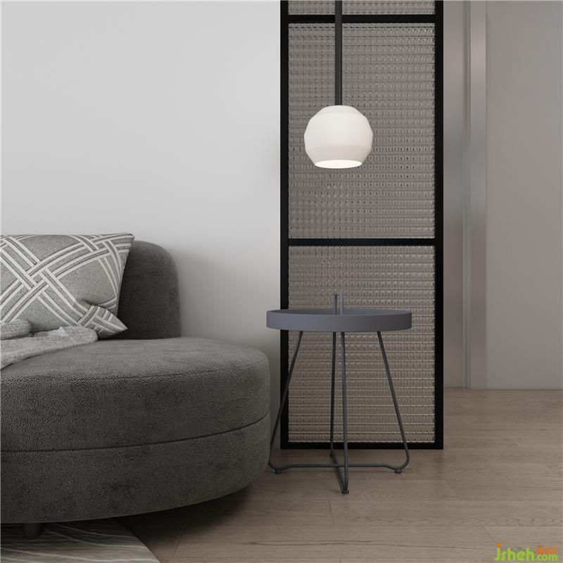 玻璃隔斷與小吊燈的組合,構(gòu)圖上也是頗費(fèi)心思,黑白灰的搭配在色彩上達(dá)到平衡。