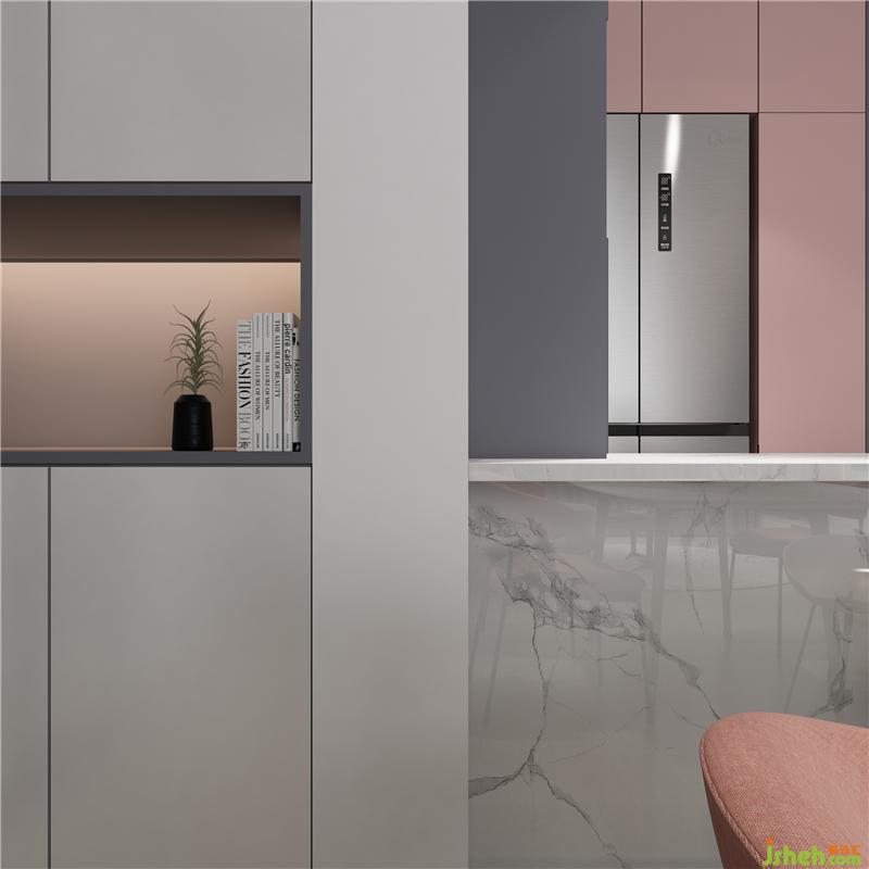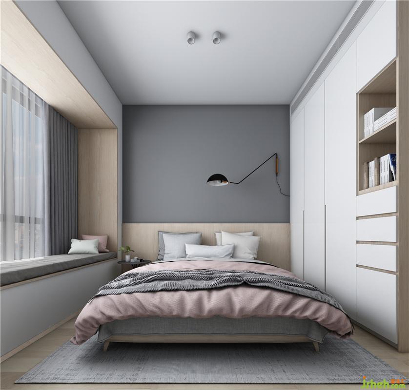 主人房我們嘗試著做減法,沒有做太多的裝飾,白、灰、粉的色塊,提升了室內(nèi)的格調(diào)。舒適的配色總是能讓人減負(fù),家,就是一個(gè)可以讓人放松的地方。白色衣柜弱化在空間中的存在感,在視覺上有所延伸。