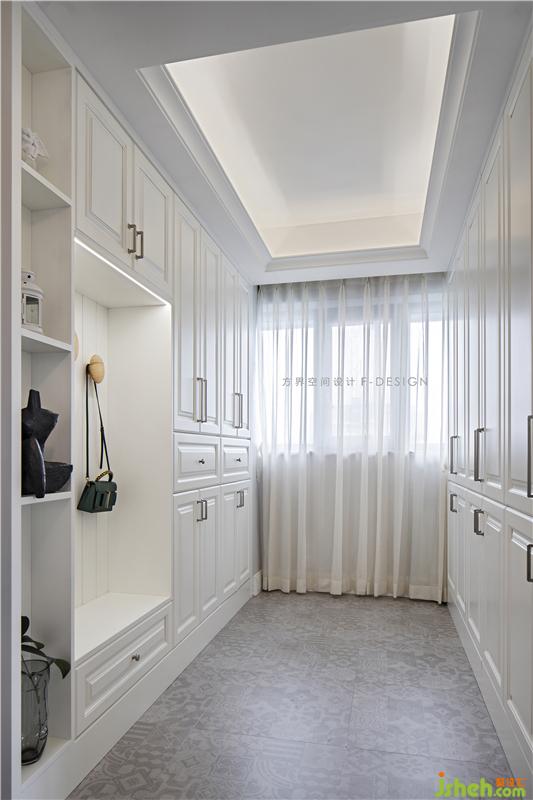 玄關(guān)處簡(jiǎn)潔大氣的鞋帽間,白色柜體與線條便是所有,卸下所有繁瑣,空間留白。