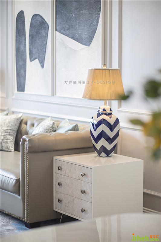 對(duì)灰色系的把握恰到好處,家具選用不同程度上的灰色,黑白大色塊的掛畫(huà)與冷灰色界面完美融合,黑白條紋的臺(tái)燈與其呼應(yīng),花藝作為唯一點(diǎn)綴色,提亮了空間整體色調(diào),空間感覺(jué)干凈,不做作。裝修設(shè)計(jì)