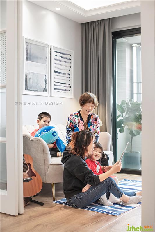 書(shū)房兼具辦公與偶爾休憩的功能。彈吉他是男主人的愛(ài)好之一,休息時(shí)在沙發(fā)上彈彈吉他聽(tīng)聽(tīng)音樂(lè),看妻子為孩子講繪本,一切的疲憊不堪在瞬間被治愈,這是幸福的模樣。裝修設(shè)計(jì)